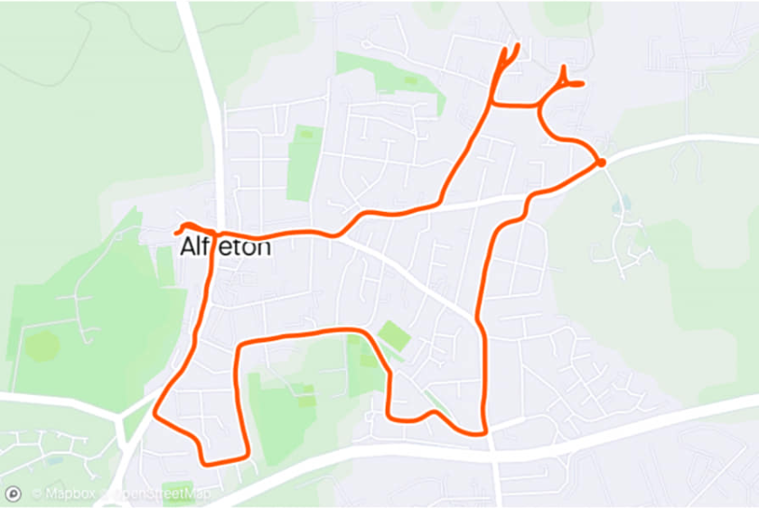 Leader Amy Bradley explains: “We did a run and someone mentioned it looked a bit like an animal with legs and then one of our group, Viki, drew some antlers on by running round the industrial estate bits at the bottom. So we attribute it all to Viki as the leader of the reindeer.